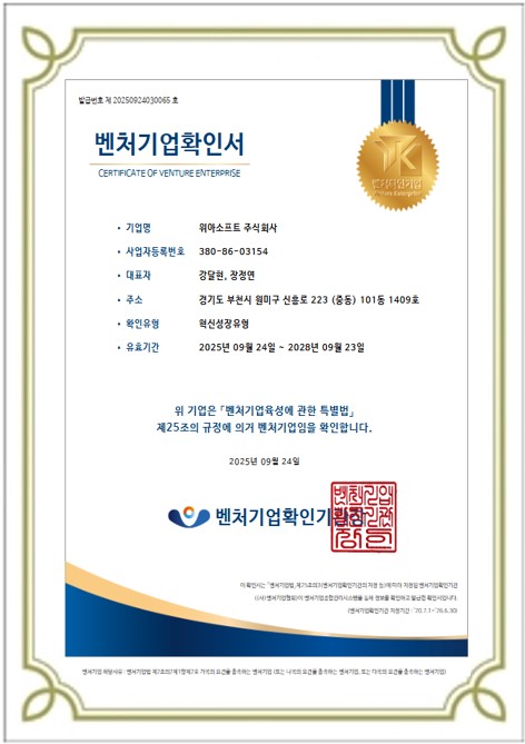 위아소프트는 파트너사가 프로젝트를 믿고 맡길 수 있는 신뢰를 위해 지속적인 자격심사를 통해 인증을 받고 있습니다